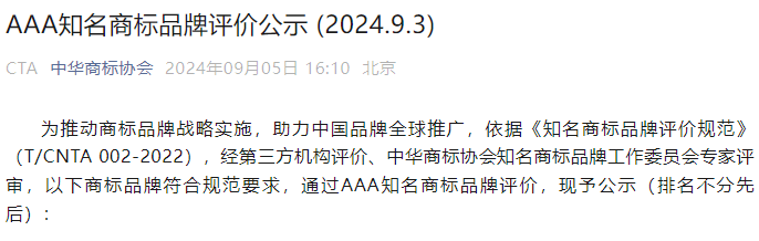 AAA知名商標(biāo)品牌,是根據(jù)《知名商標(biāo)品牌評價規(guī)范》T/CNTA 002-2022團(tuán)體標(biāo)準(zhǔn),經(jīng)第三方評價機(jī)構(gòu)現(xiàn)場評價、由中華商標(biāo)協(xié)會知名商標(biāo)品牌評價專家評審會審核批準(zhǔn)后,授予的榮譽(yù)稱號。這一標(biāo)準(zhǔn)由中華商標(biāo)協(xié)會聯(lián)合多家科研院所、專業(yè)協(xié)會、行業(yè)機(jī)構(gòu)和新聞媒體共同制定,旨在引導(dǎo)我國企業(yè)建立商標(biāo)品牌創(chuàng)造、運(yùn)用、管理和保護(hù)體系,積極推進(jìn)商標(biāo)品牌戰(zhàn)略實(shí)施,培育具有市場競爭力、國際影響力的知名商標(biāo)品牌。燕之屋“碗燕”商標(biāo)榮獲AAA知名商標(biāo)品牌稱號,是“碗燕”品牌贏得專業(yè)機(jī)構(gòu)認(rèn)可的充分證明,也見證了燕之屋“碗燕”作為中國品牌向前邁進(jìn)堅實(shí)的一步。