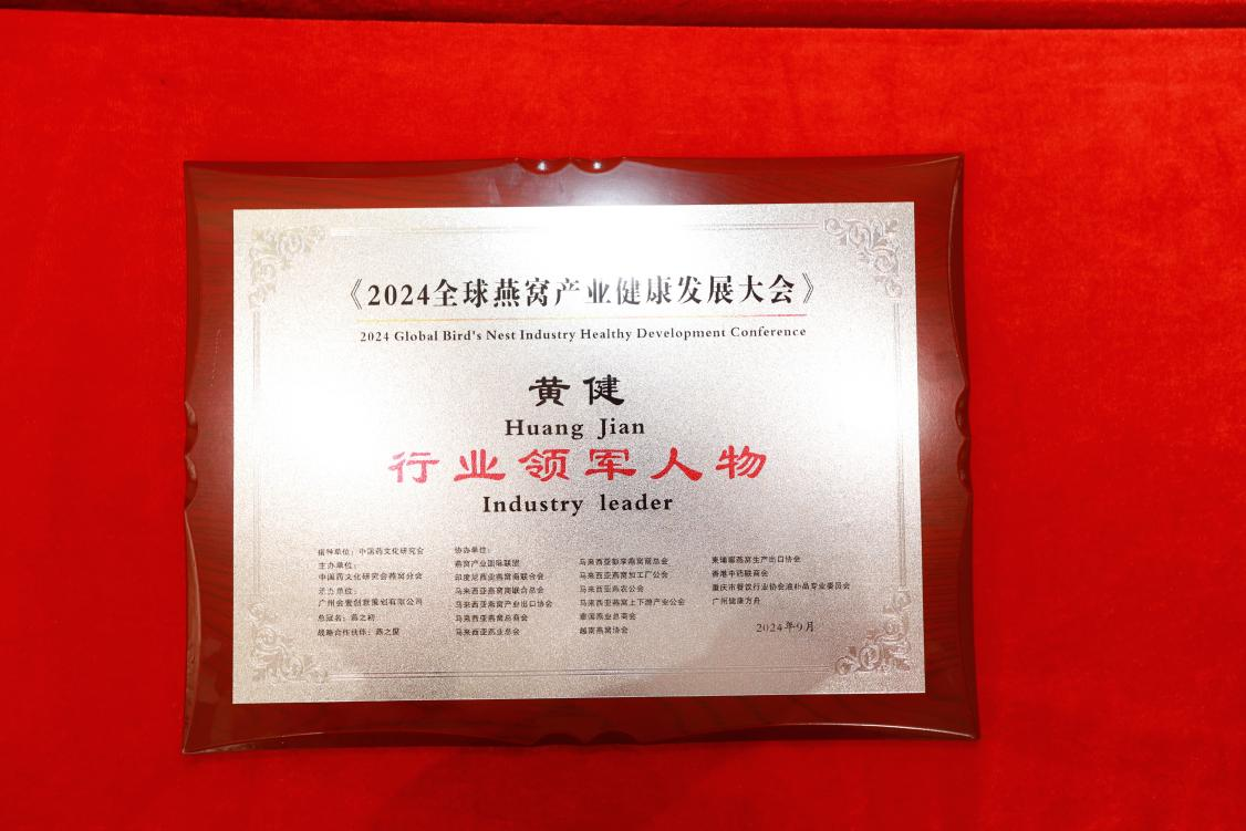 9月23日,在榜樣的力量一行業(yè)表彰盛典上,燕之屋憑借先進(jìn)的創(chuàng)新引領(lǐng)力、卓越的產(chǎn)品競(jìng)爭(zhēng)力、強(qiáng)勁的品牌影響力榮獲行業(yè)領(lǐng)軍品牌大獎(jiǎng)、行業(yè)匠心品牌大獎(jiǎng)、技術(shù)創(chuàng)新大獎(jiǎng),燕之屋創(chuàng)始人、執(zhí)行董事兼董事長(zhǎng)黃健榮獲行業(yè)領(lǐng)軍人物;燕之屋傾情助力2024全球燕窩產(chǎn)業(yè)健康發(fā)展大會(huì),進(jìn)一步推動(dòng)燕窩產(chǎn)業(yè)的創(chuàng)新發(fā)展,促進(jìn)燕窩文化的傳承與交流,為行業(yè)的繁榮貢獻(xiàn)力量,獲頒《2024全球燕窩產(chǎn)業(yè)健康發(fā)展大會(huì)》戰(zhàn)略合作單位,并成為《2024全球燕窩產(chǎn)業(yè)健康發(fā)展大會(huì)》唯一指定碗燕即食燕窩品牌,燕之屋公關(guān)總監(jiān)楊航上臺(tái)領(lǐng)獎(jiǎng)。